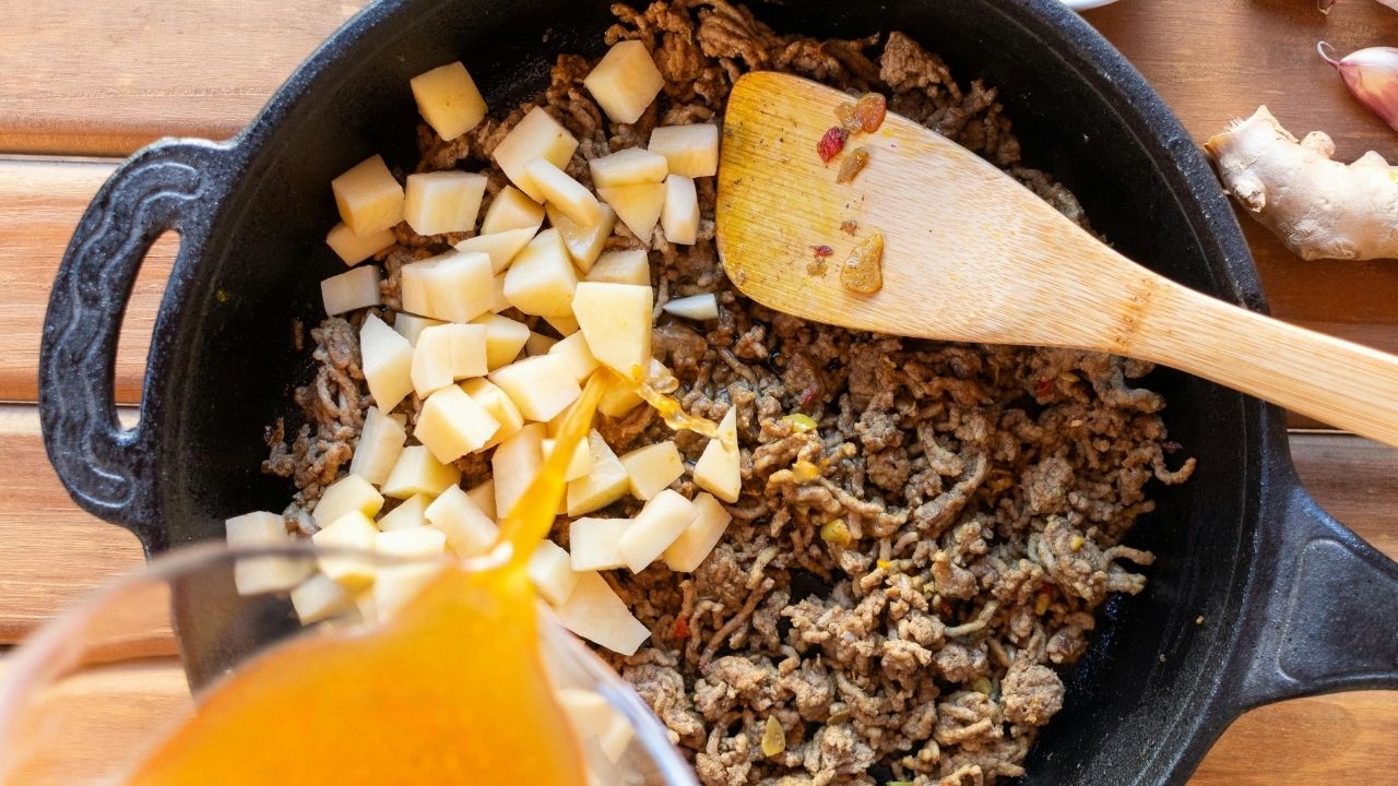 Tek tavada hazırlanan en kolay kıymalı yemek